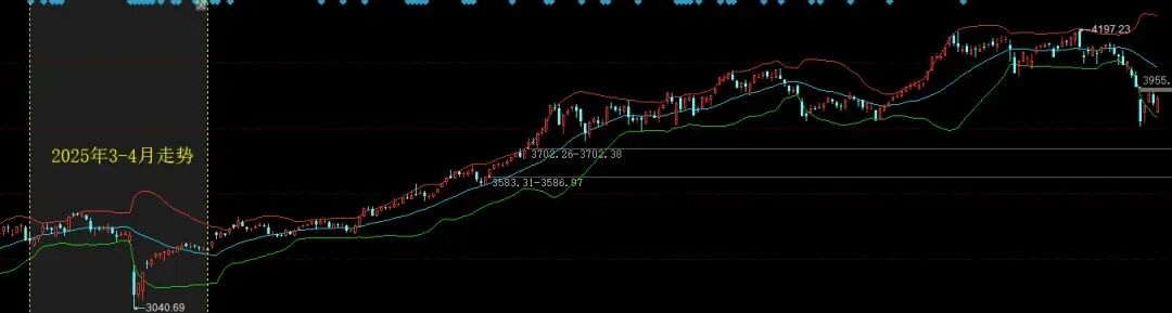 近期的对比,则是对比去年3月底4月初,认为近期指数可能会短期破一下3800点支撑位之后,可能会有护盘之类的资金大量级进场扭转市场情绪。这是我们认为策略应对可能发生的两种历史走势。